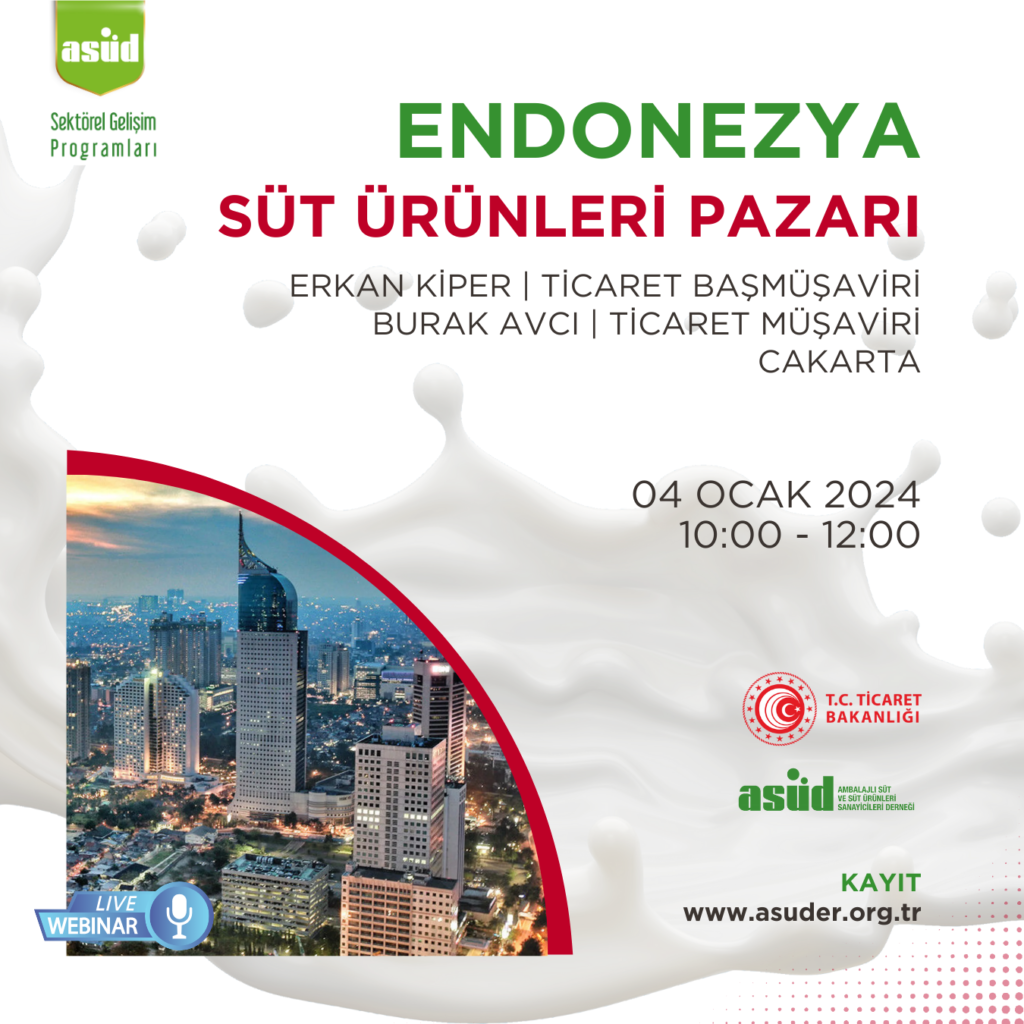 Cakarta Ticaret Müşavirliğimiz ile Endonezya süt ürünleri pazarının yapısını analiz ederek, pazara giriş koşulları, izinler, denetim ve helal akreditasyon sürecini ele alacağımız webinarımızda bir arada olmayı diliyoruz.